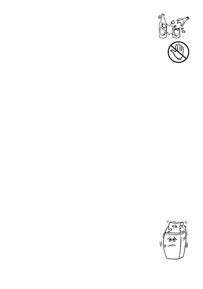 • Do not place glass bottles or beverage cans in the freezer