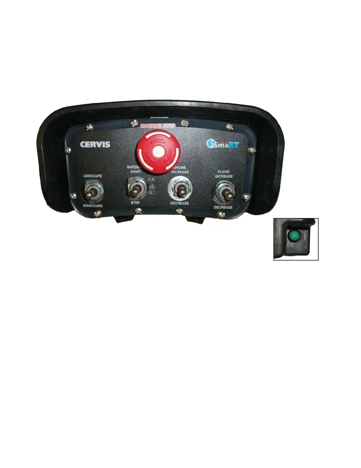 INCREASE/DECREASE. It also contains an Emergency Stop (e-stop) button that will shut down