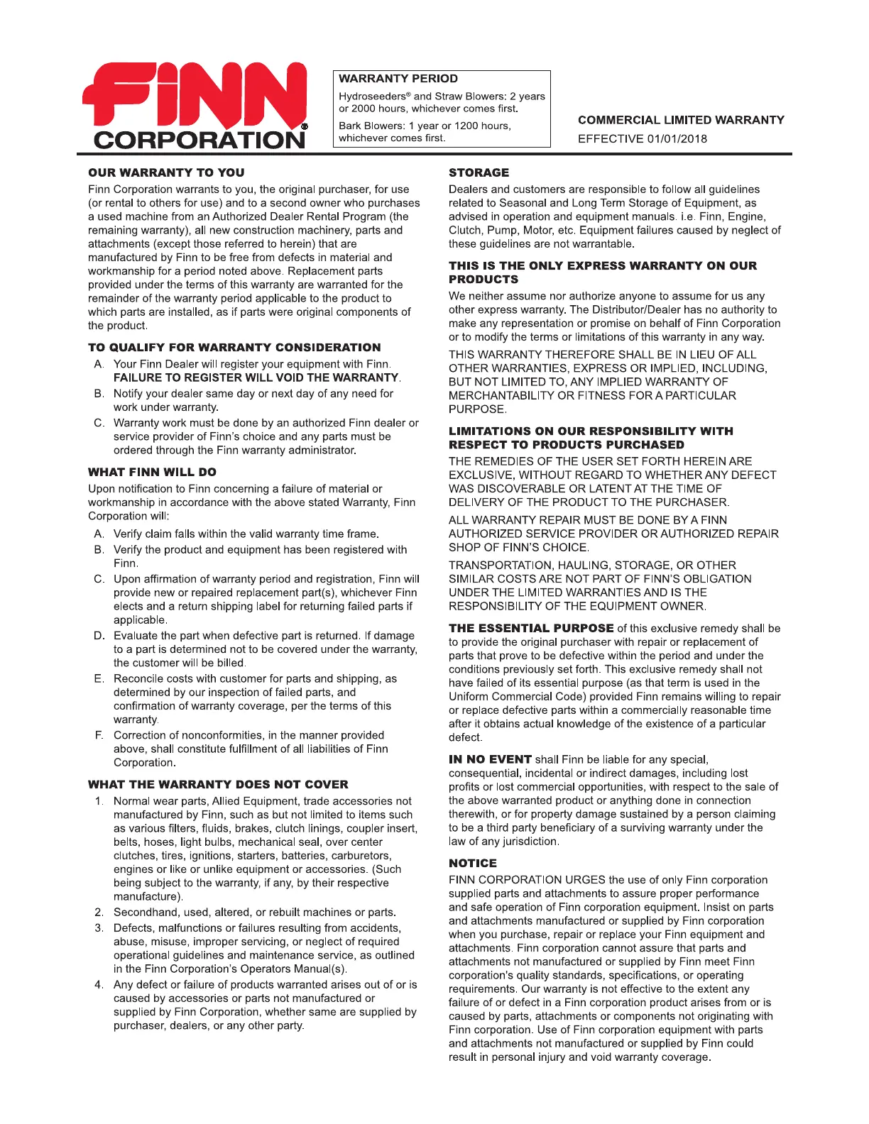 Finn B-40 - Our Warranty to You; Warranty Period and Qualification; Warranty Exclusions and Limitations; Express Warranty Statement