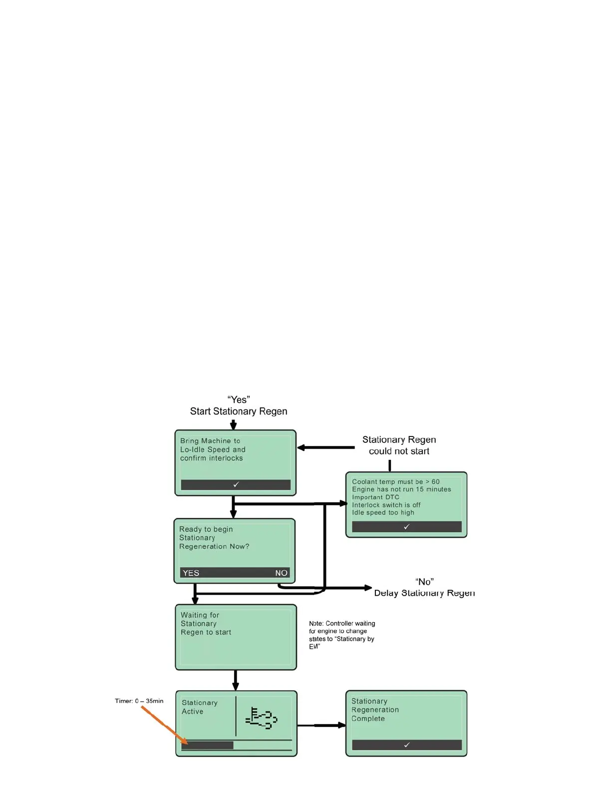 Note: Stationary Regeneration will not begin if any of the following conditions are present: