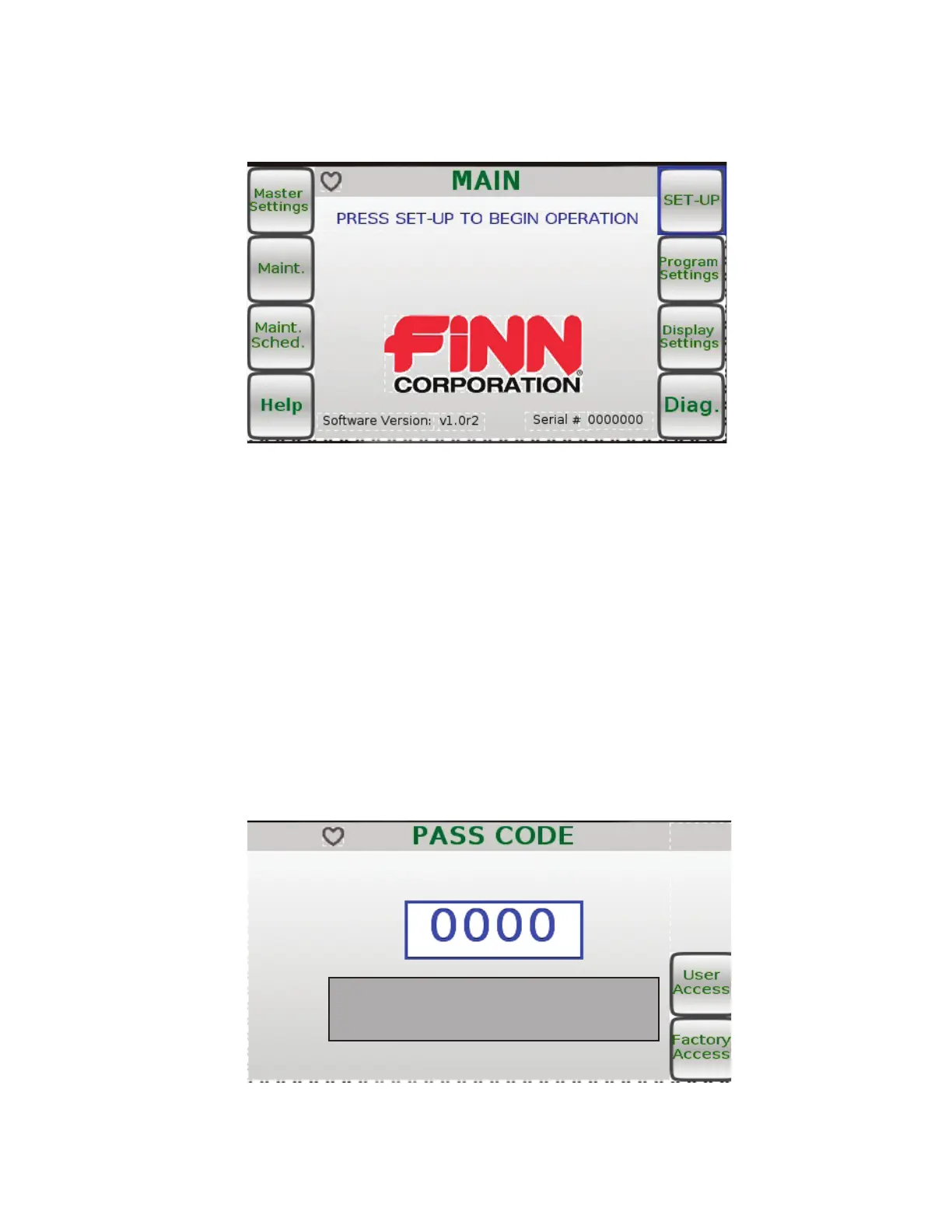 Once you have pressed the Master Settings button, you will be taken to the Pass Code screen
