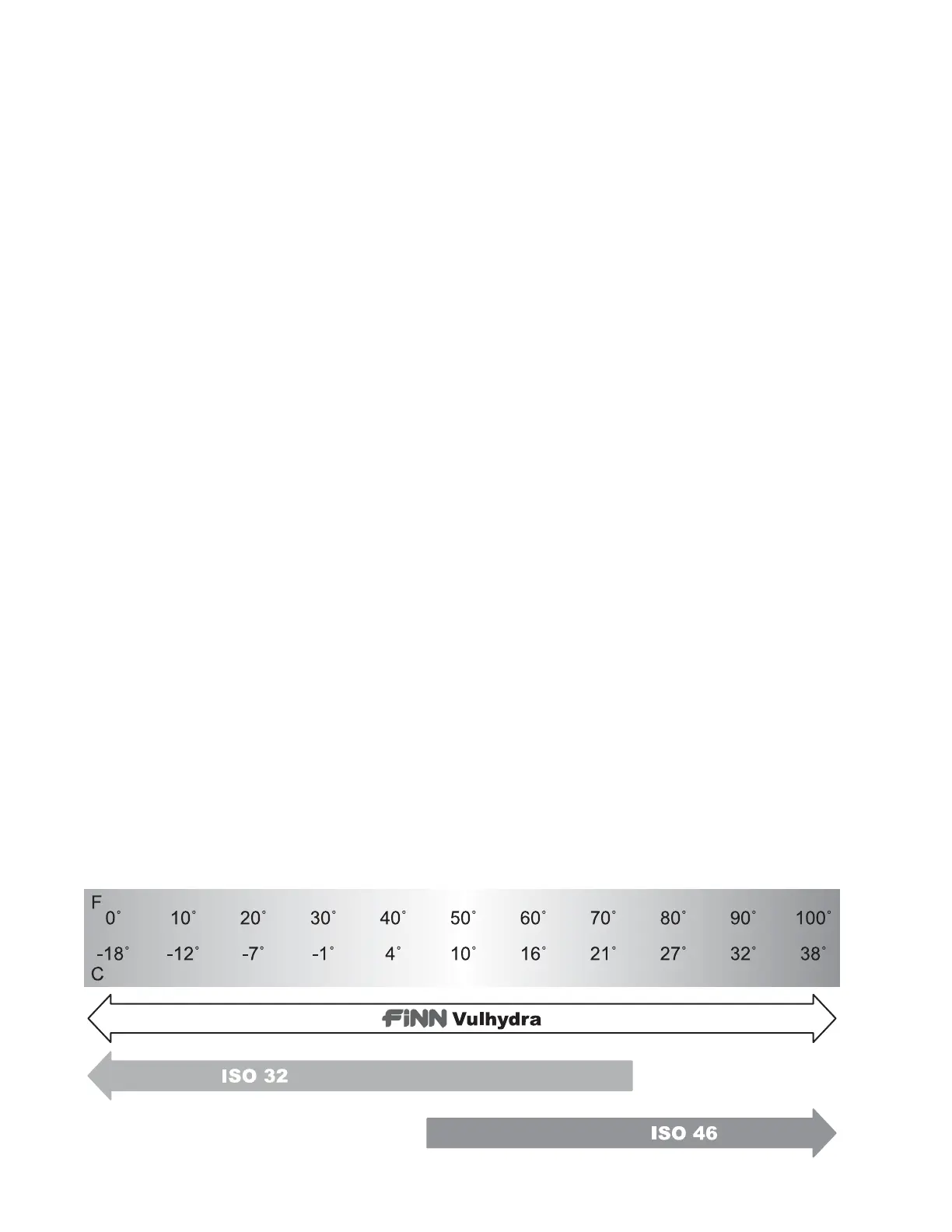 At time of manufacture, this unit contains Finn Vulhydra hydraulic oil. The chart below illustrates