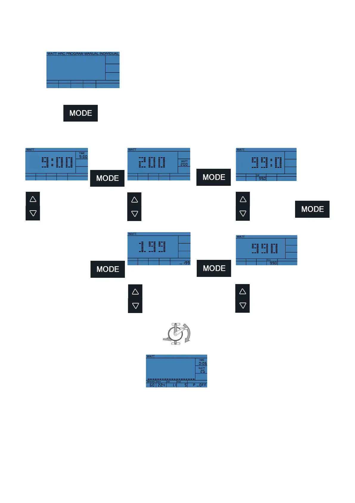 Finnlo EXUM - WATT Training Mode; WATT Mode Selection; Adjusting WATT Values