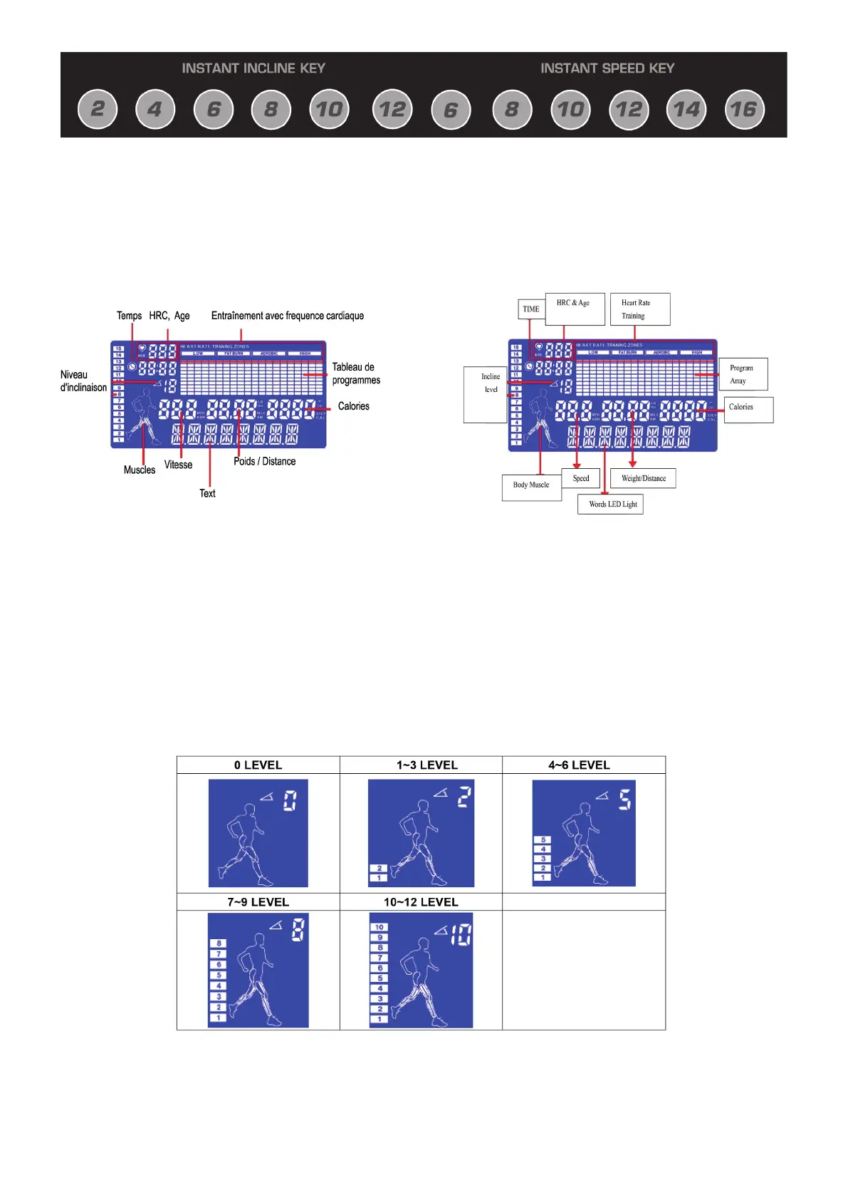 user adjust Incline, the corresponding muscle training will flash.