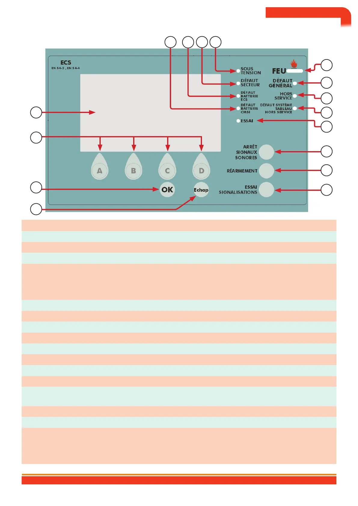 12 General fault (Yellow) Lights up when at least one fault is present on the ECS or the CMSI