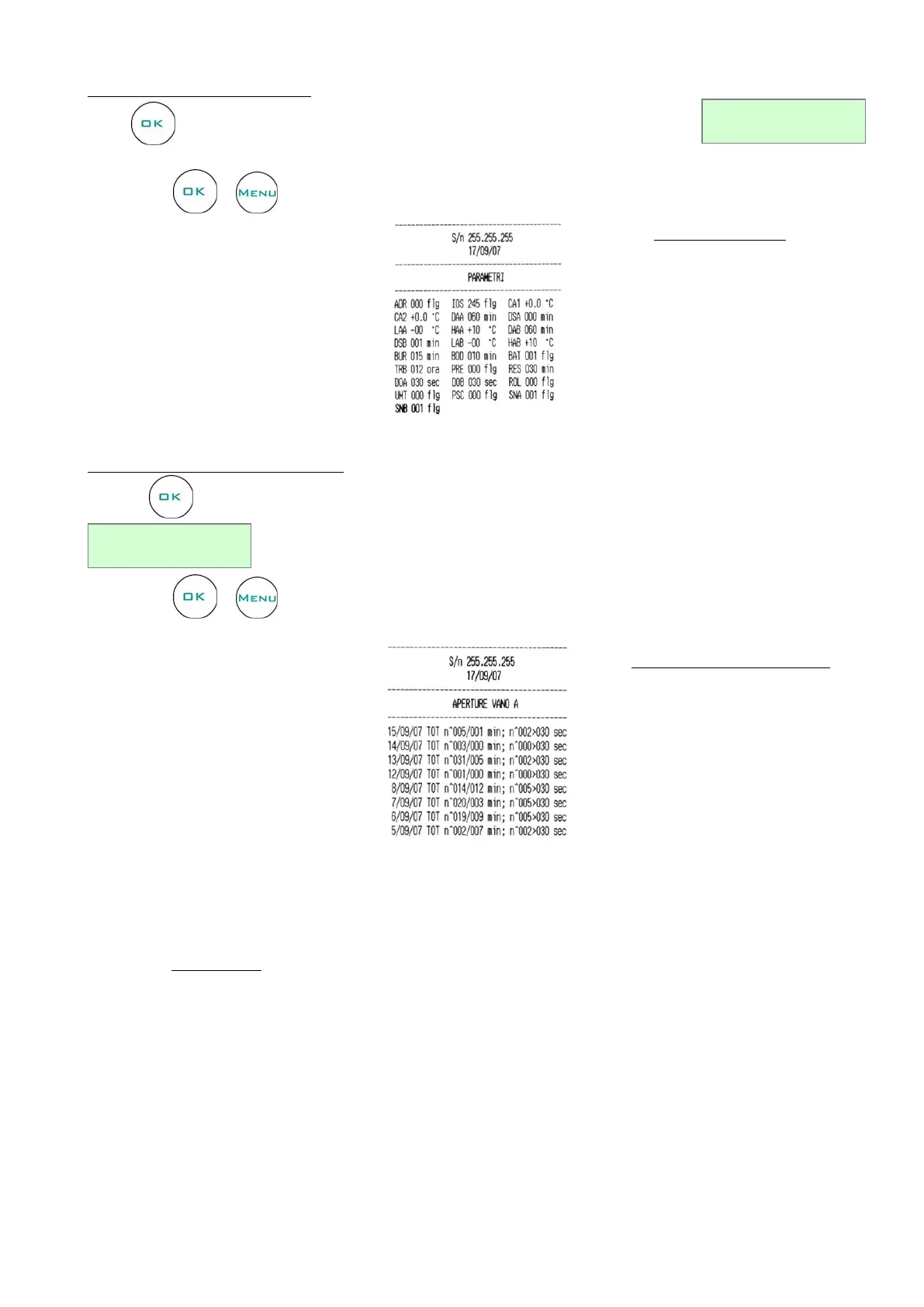Press to enter in Door openings print menu. The following string appears in the display: