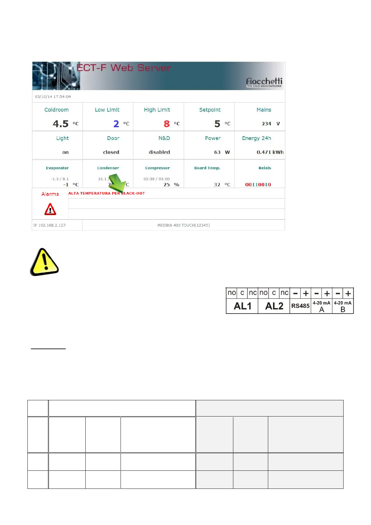 Potential-free relay (no-c-nc) switches whenever an alarm or a failure is detected by the