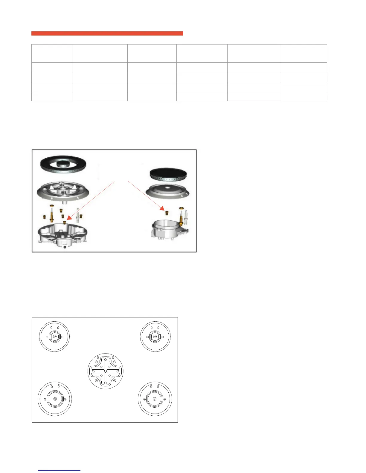 Install the proper nozzles in the exact locations as noted in the illustrations above and the table