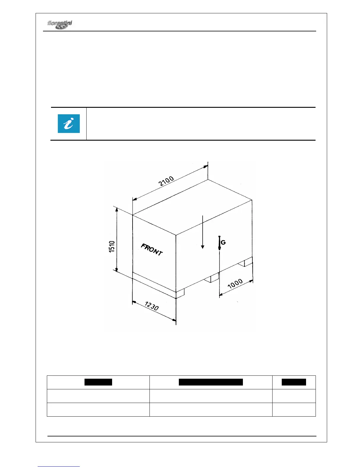 package shows the barycentre. This arrow must be in the middle of the elevator or transpallet forks. The
