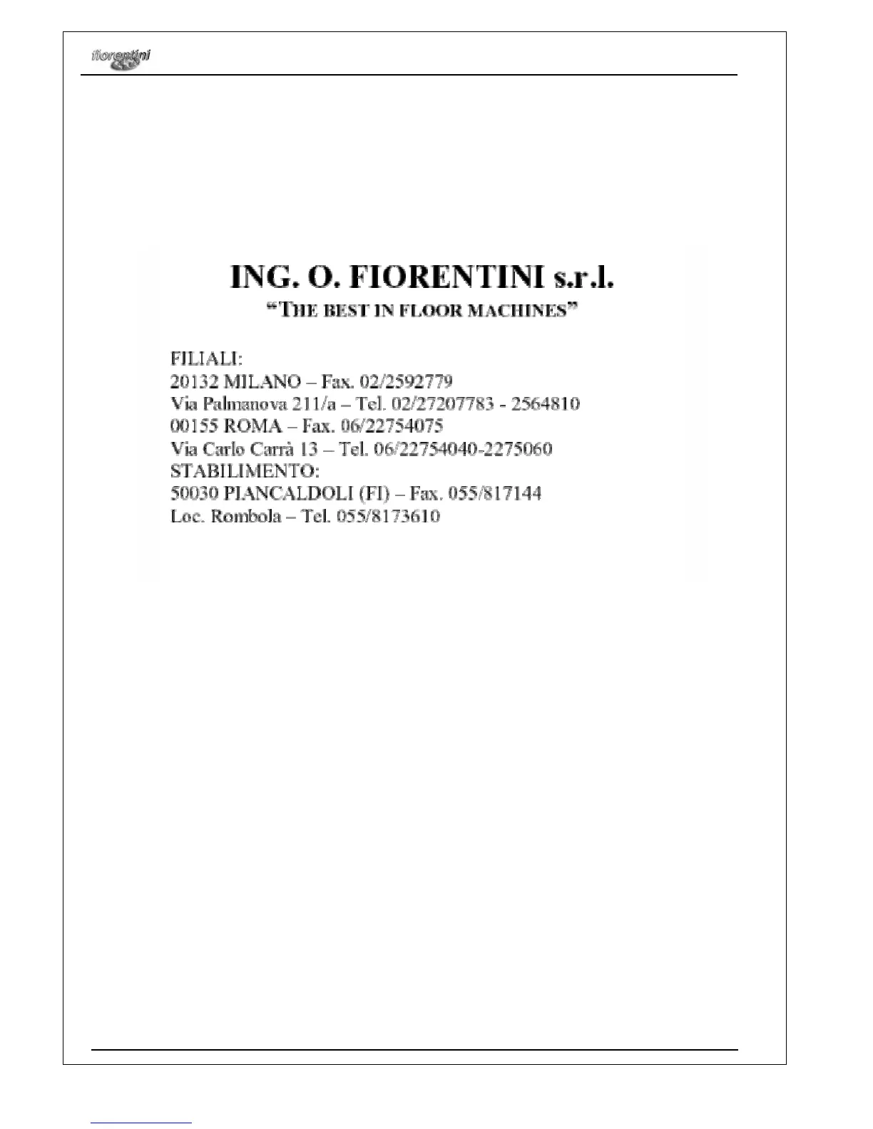 to read carefully this manual before using the machine. On the contrary, if the customer needs a FIORENTINI