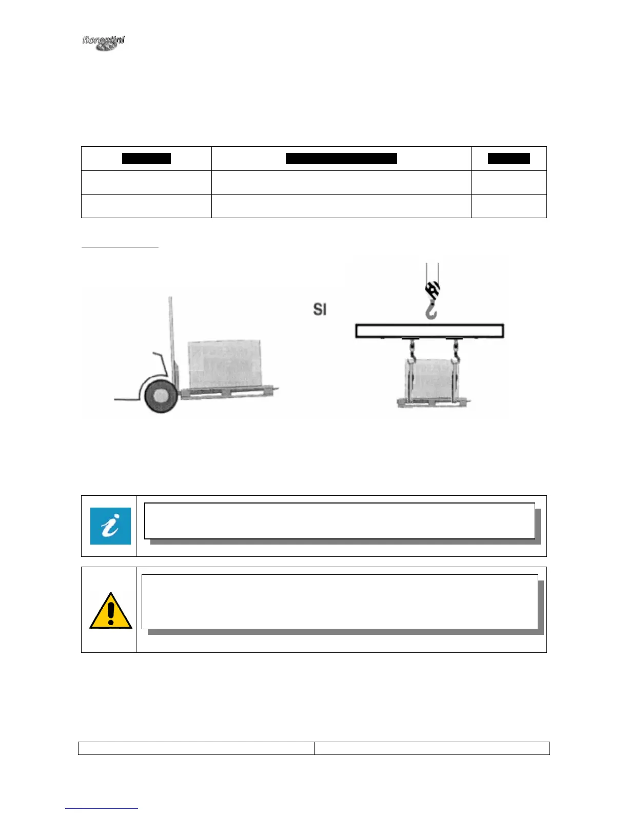 The machine must be handled with proper devices as stated in the scheme below. Please, make sure that