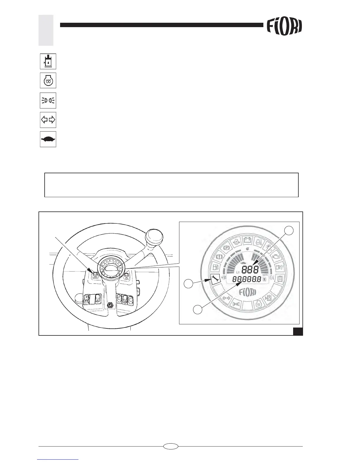 12 - Red warning light: indicates that the hydraulic oil level is low.