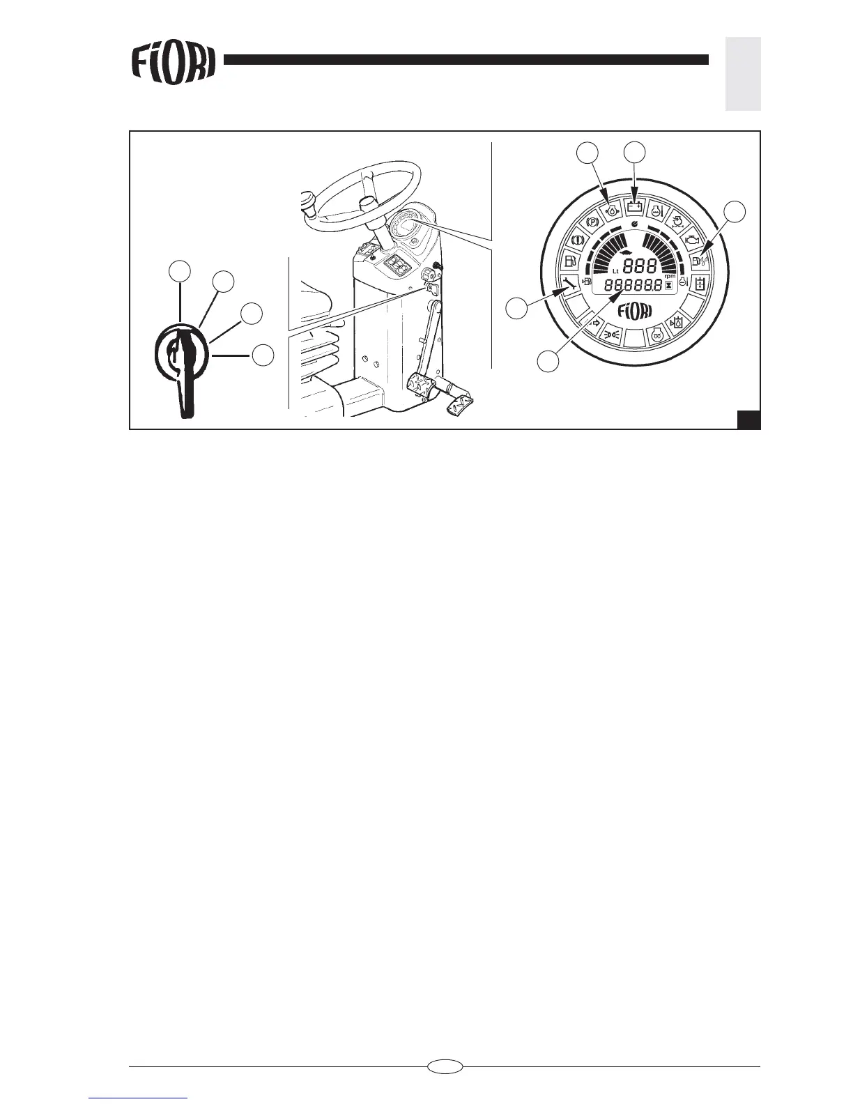 warning light (6) and the engine oil warning light (5), while the warning light that indicates that there is water