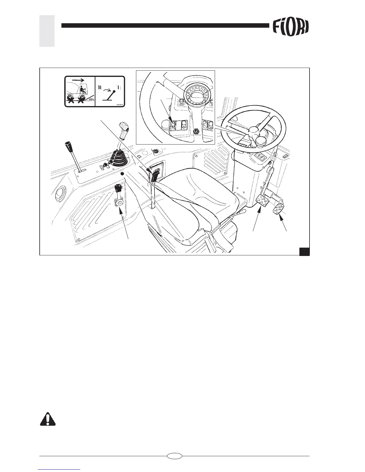 accelerator (E) is set to “1”, the machine does not move when the selector (A) is moved to the desired driving
