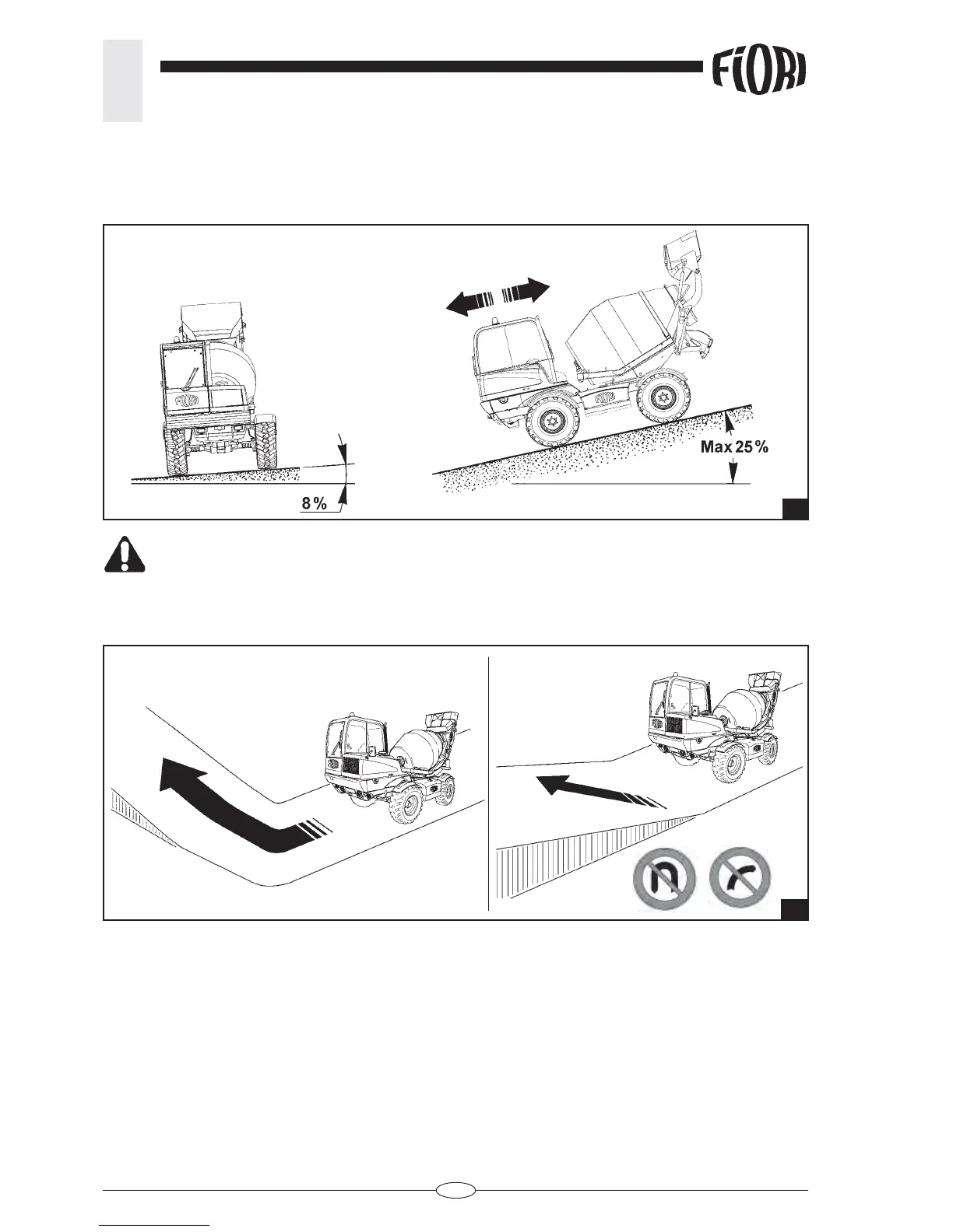 Driving on slopes with a gradient above the prescribed one may cause the vehicle