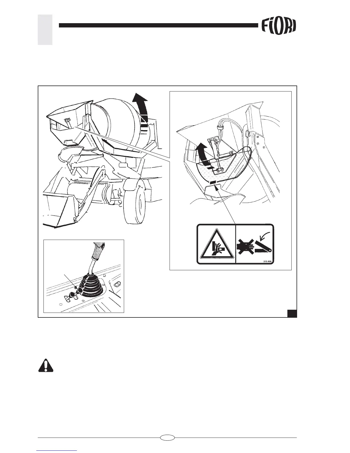 drum opening: risk of crushing if the hatch is closed inadvertently!