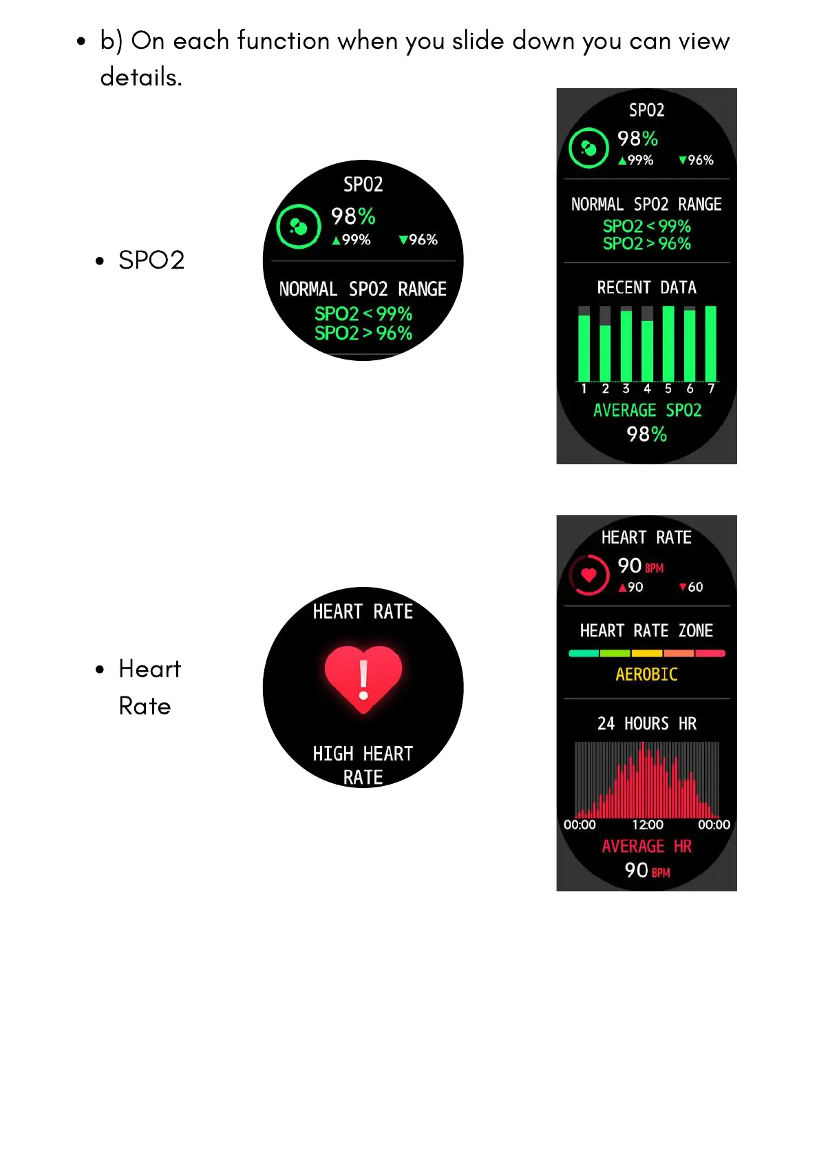 b) On each function when you slide down you can view