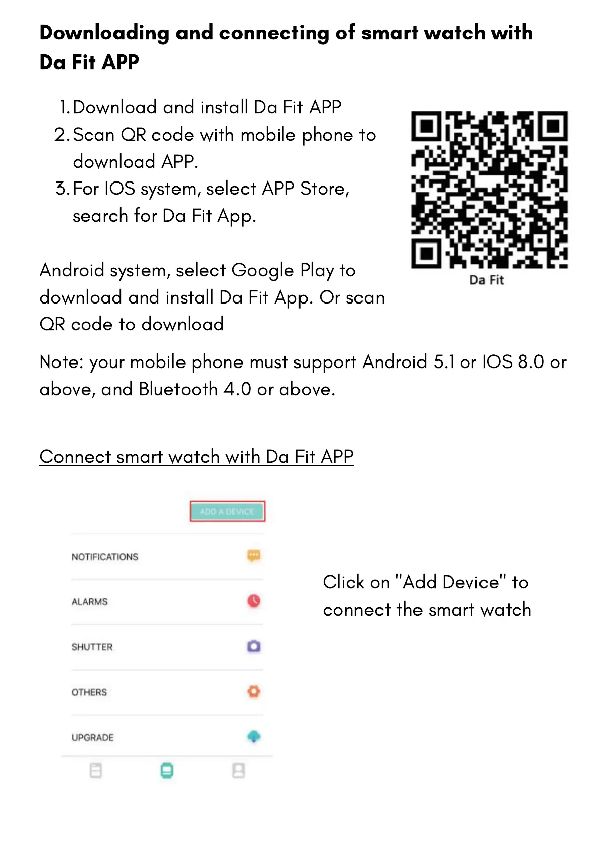 Connect smart watch with Da Fit APP