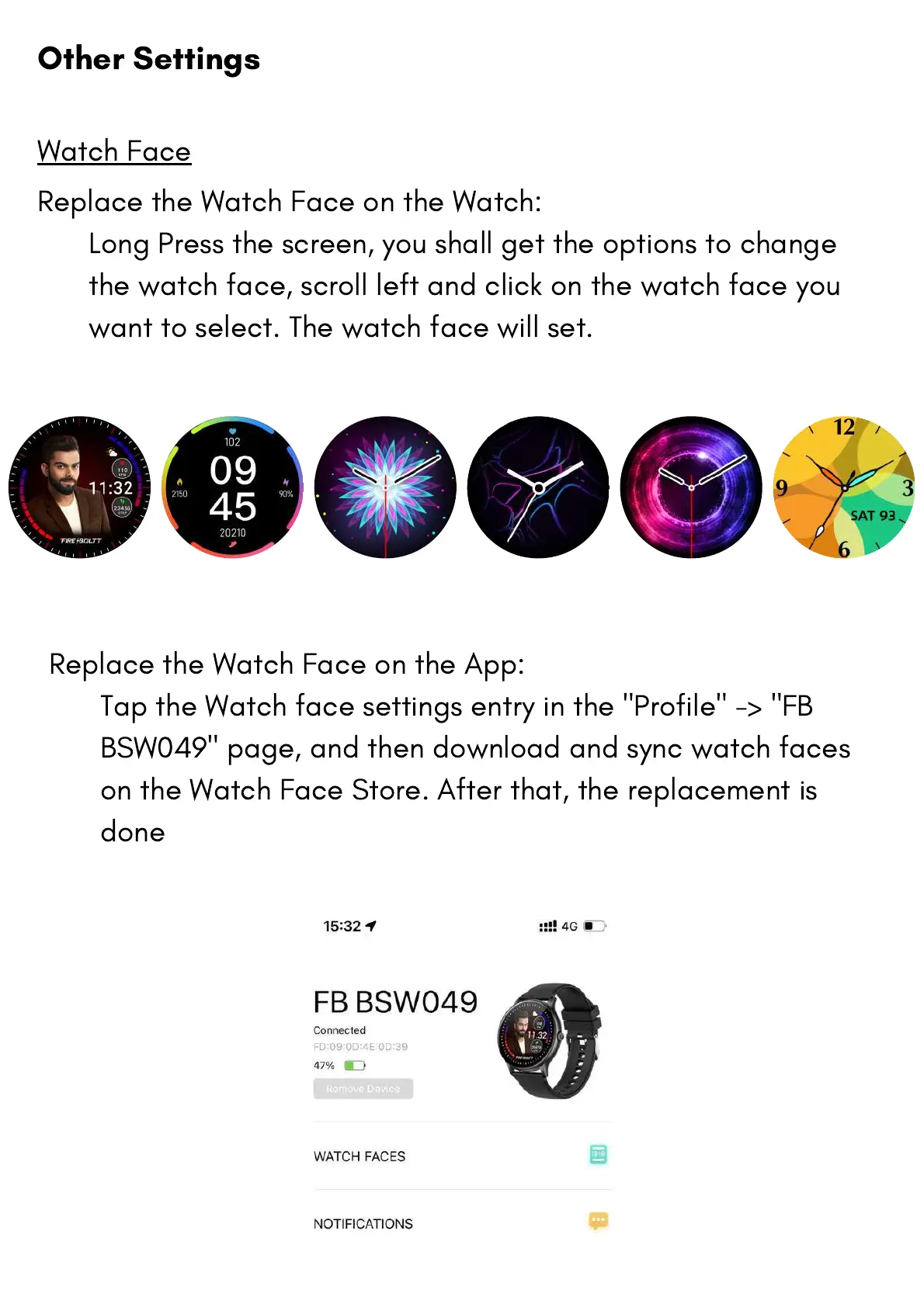 BSW049" page, and then download and sync watch faces