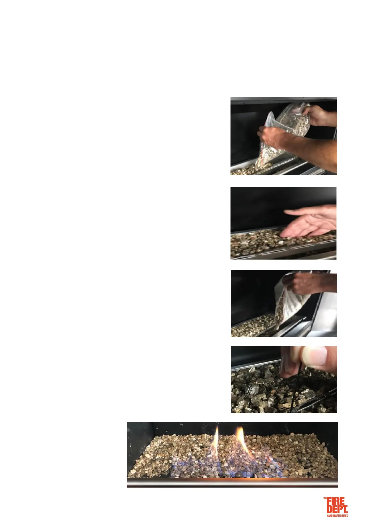 • Fill up area in front of burner and gently pat