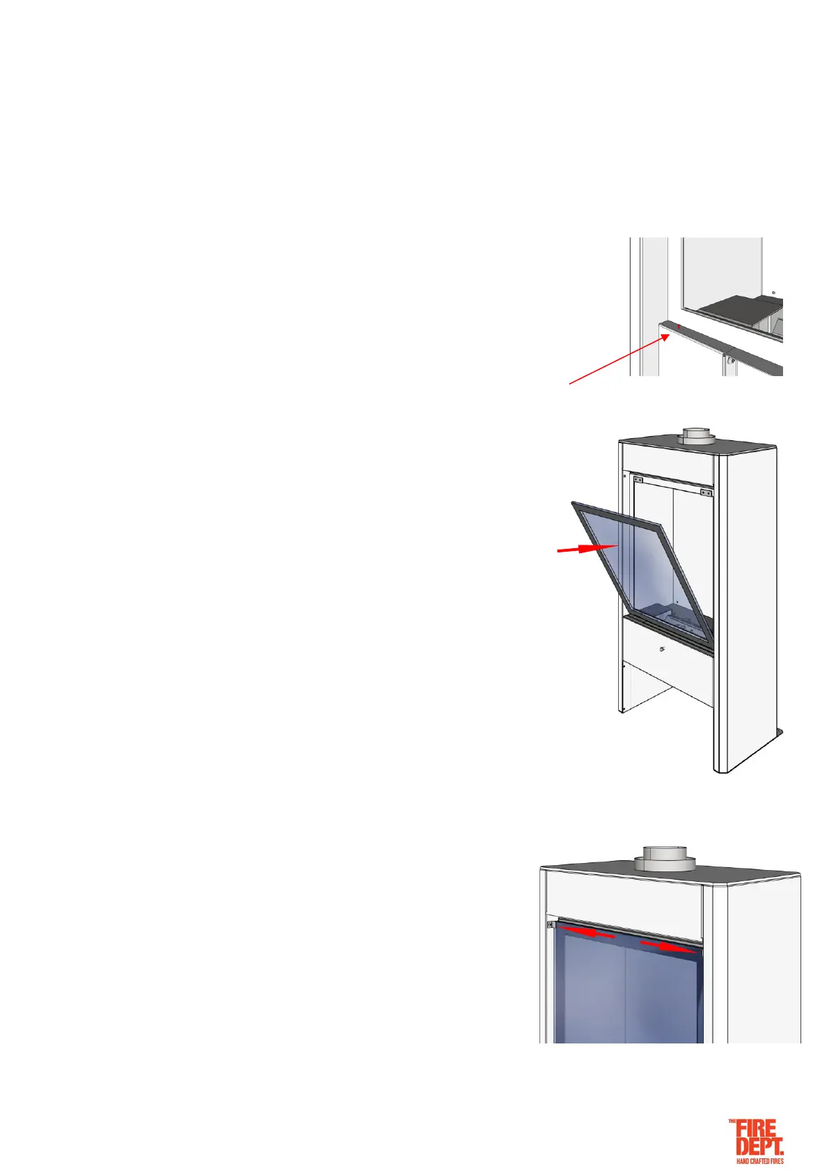 • Carefully install the glass, which is held in place by retaining clips at the top sides of the glass and powerful