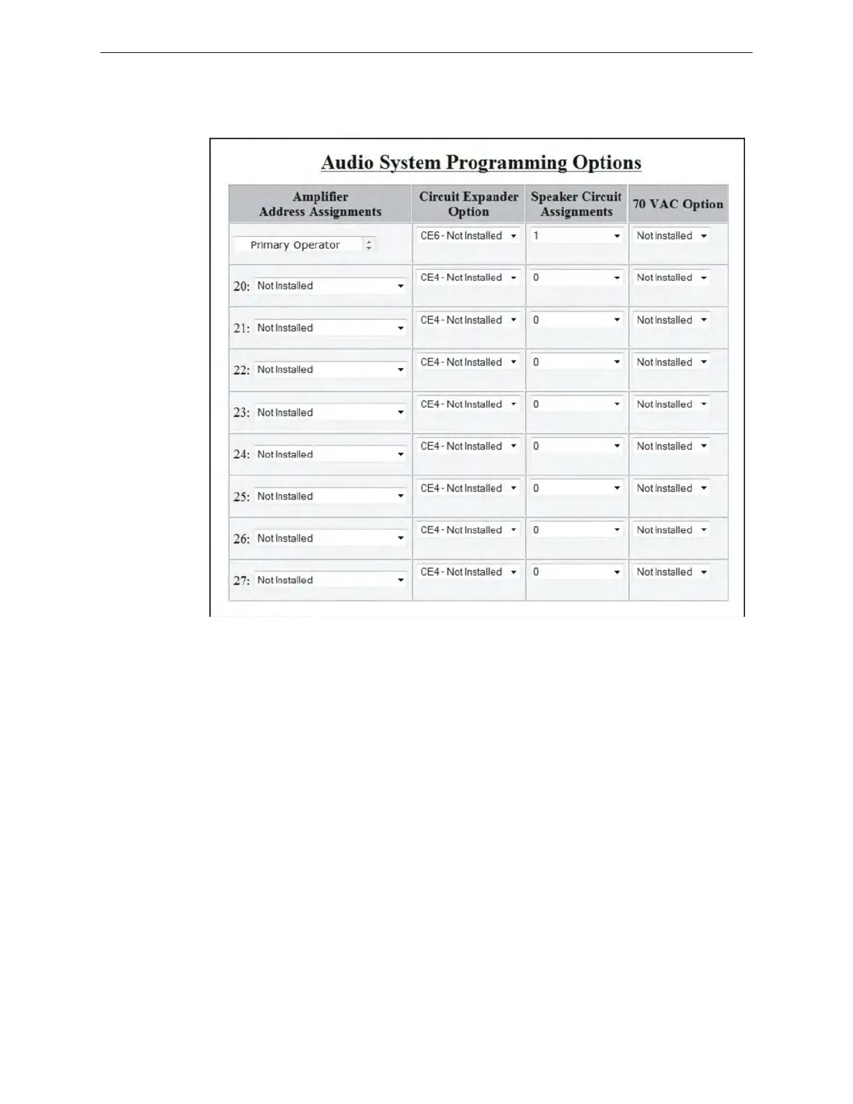 used. If no remote amplifiers are installed at a given address, select Not Installed.
