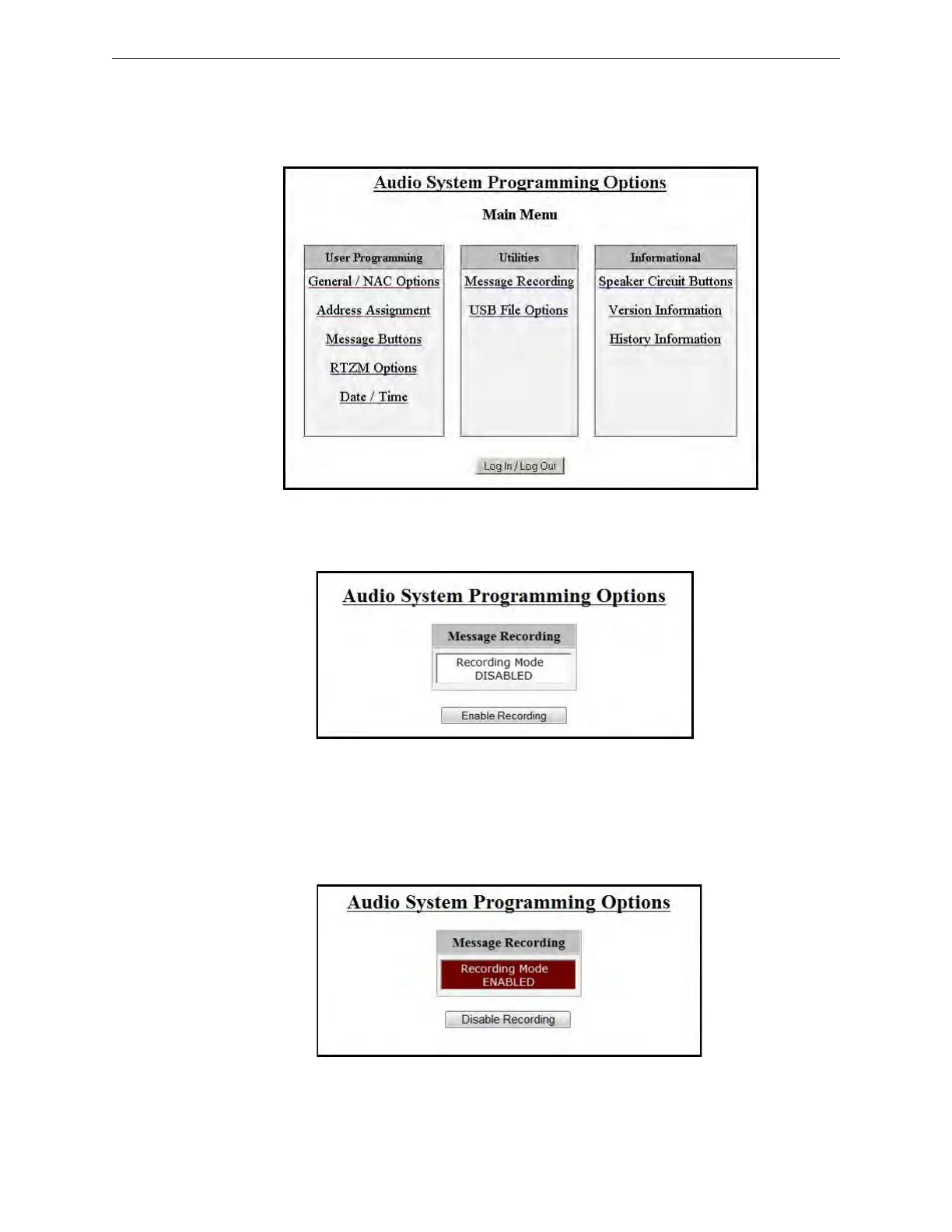 Clicking the Enable Recording will put the system in message record mode. Refer to Section 3.4.