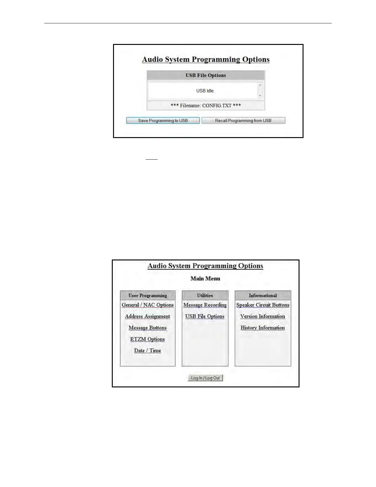 overwritten. Only files named CONFIG.TXT can be recalled from a USB drive. The ECC system