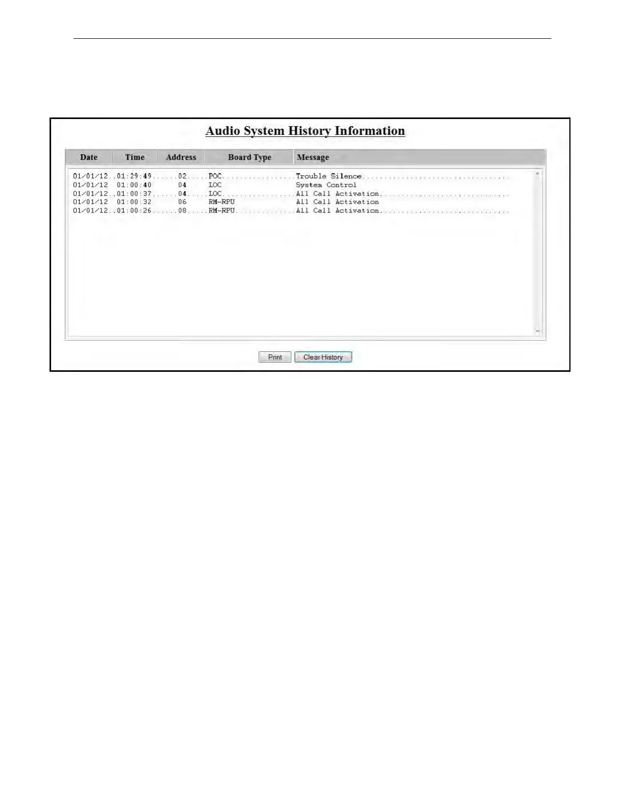 be viewed, starting with the most recent. This information can be erased by clicking the Clear His-