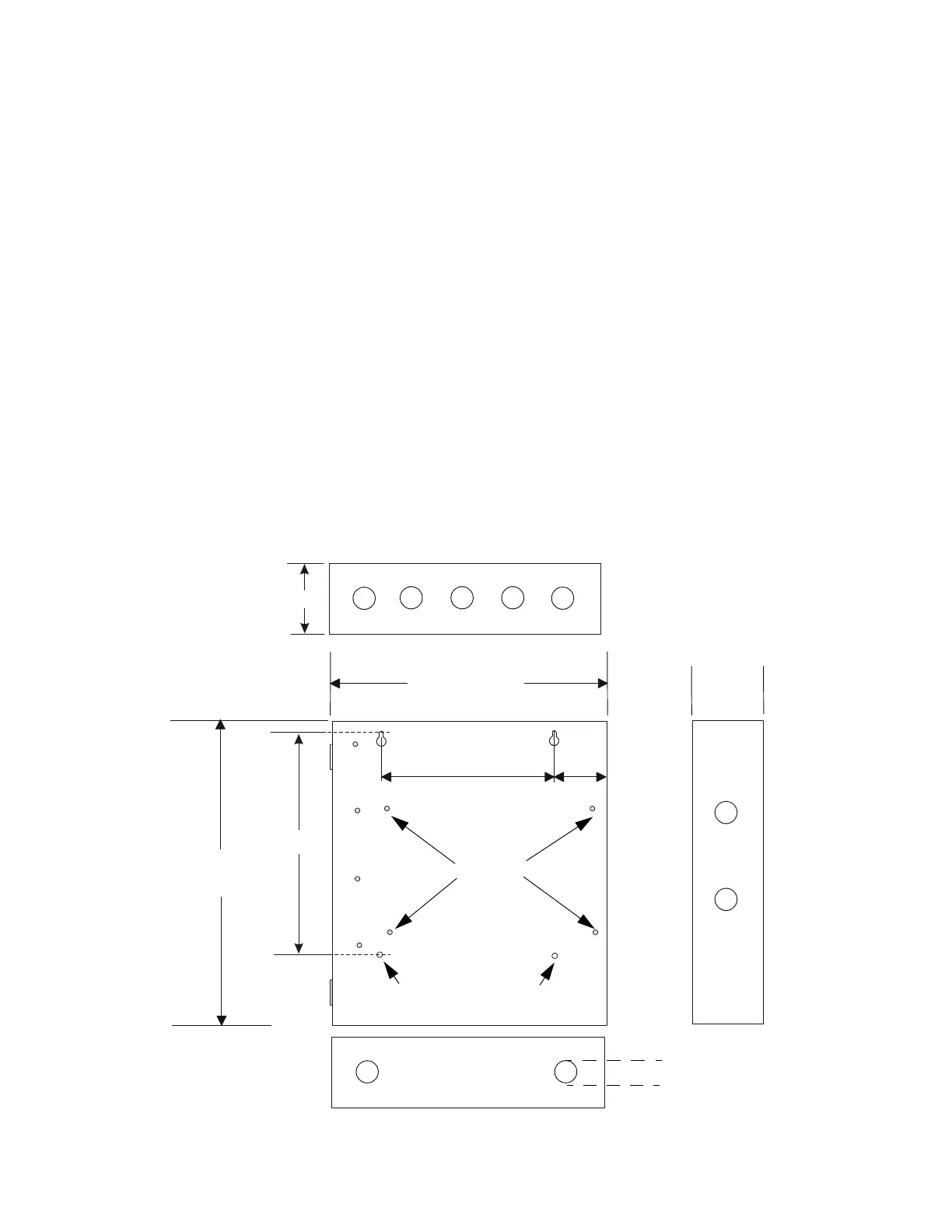 hinges. The cabinet mounts using two key slots at the top of the backbox and two additional 0.250”