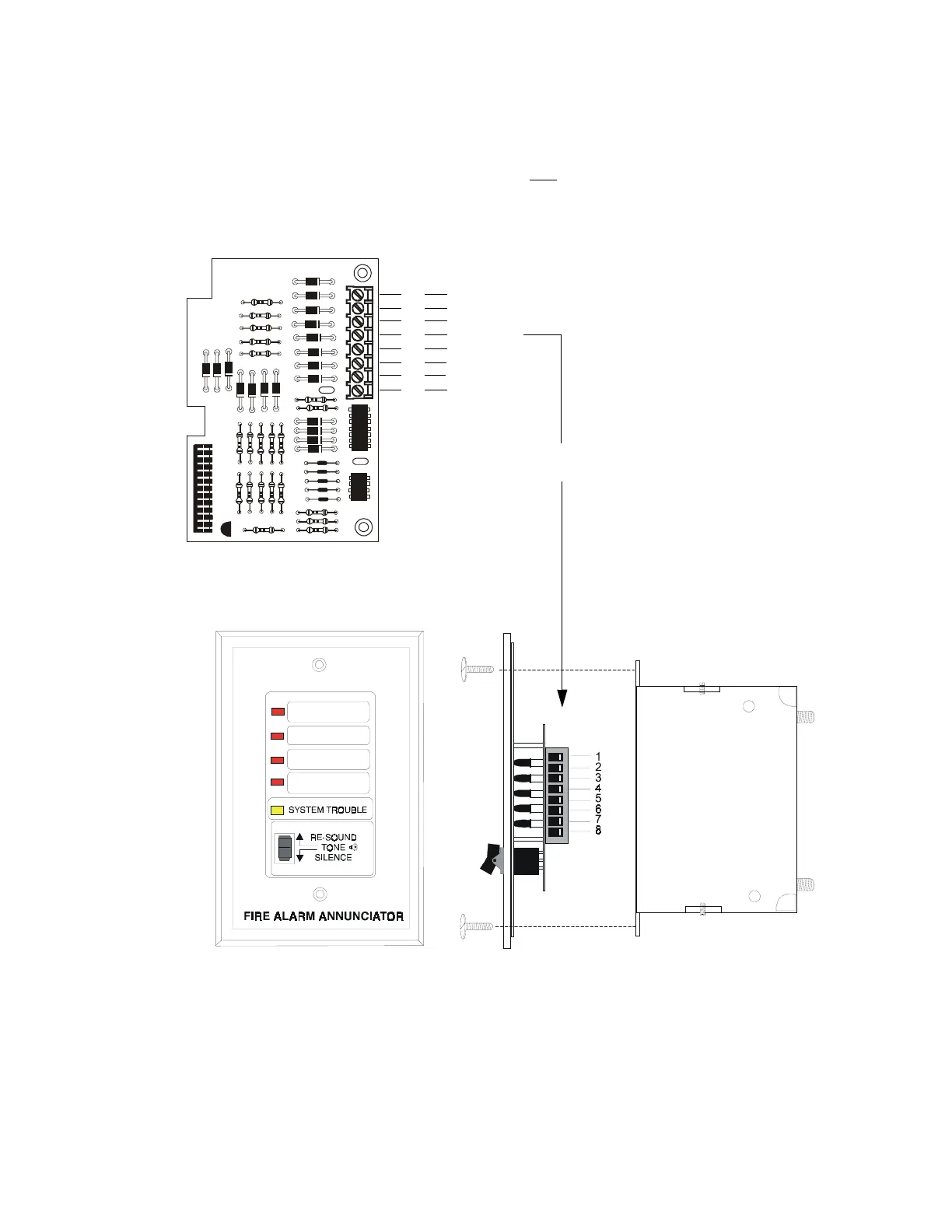The 4XLMF supports the RZA-4XF Remote Annunciator module. The wiring of this