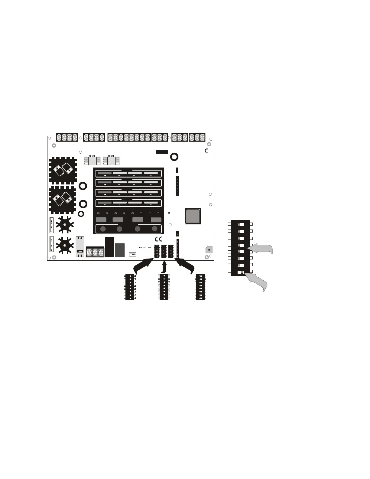 illustration for switch locations and DIP switch placement in the ON and OFF