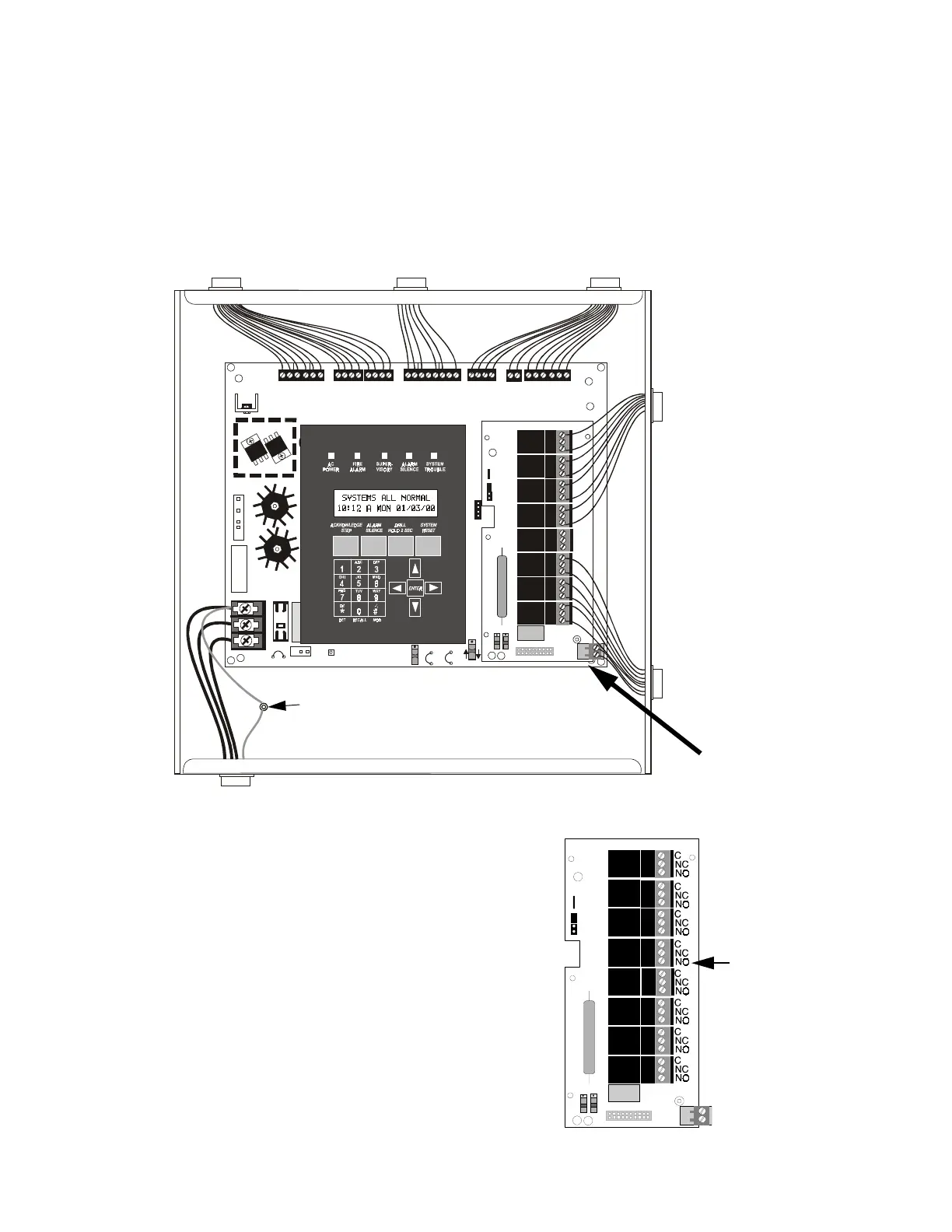 Power-limited and nonpower-limited circuit wiring must remain separated in the cabinet. All power-limited circuit