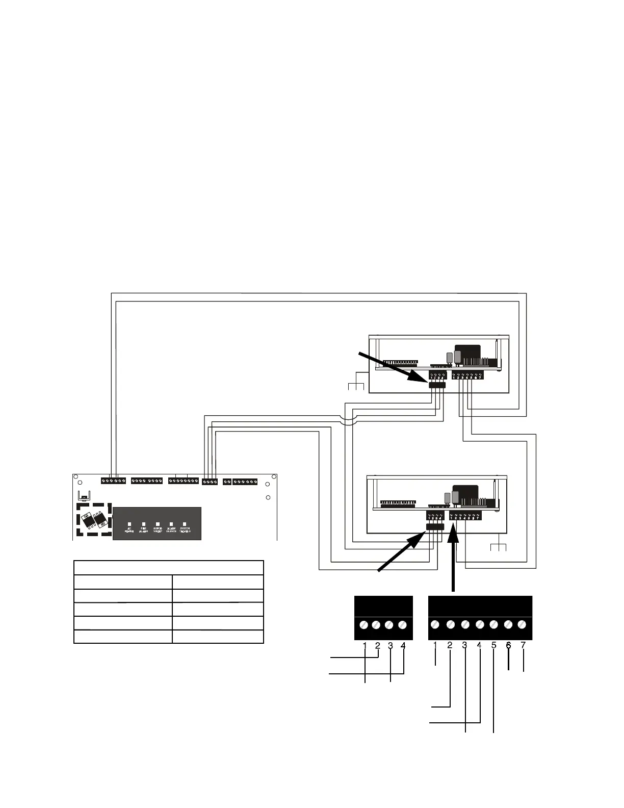 1) The table above shows terminal to terminal wiring between the