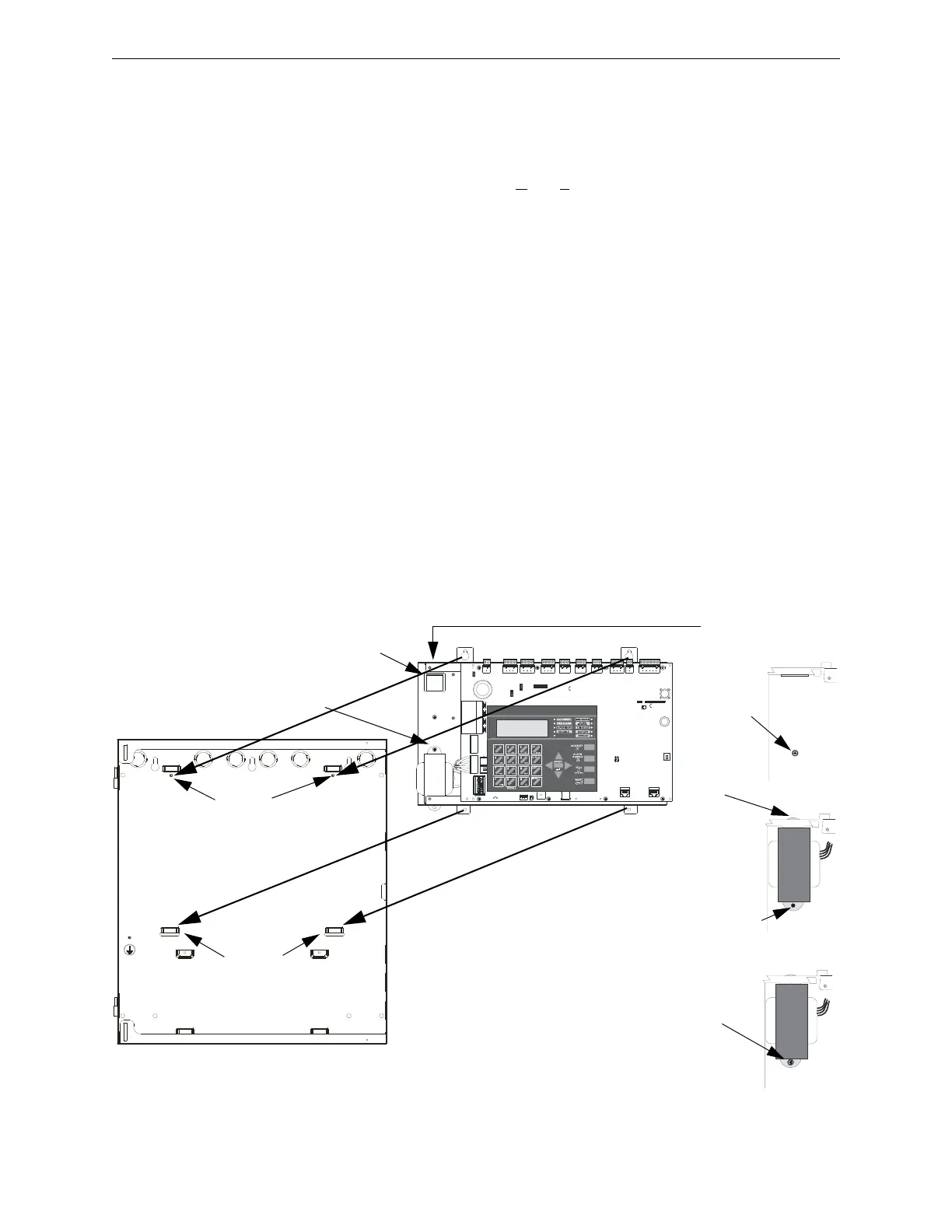 3. Mount the chassis to the backbox by aligning the two mounting tabs with the slots in the
