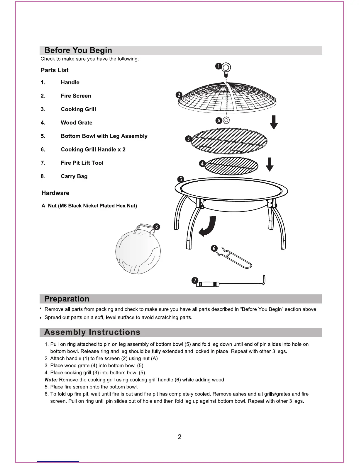 Fire Sense 60873 - Before You Begin; Parts List; Preparation; Assembly Instructions