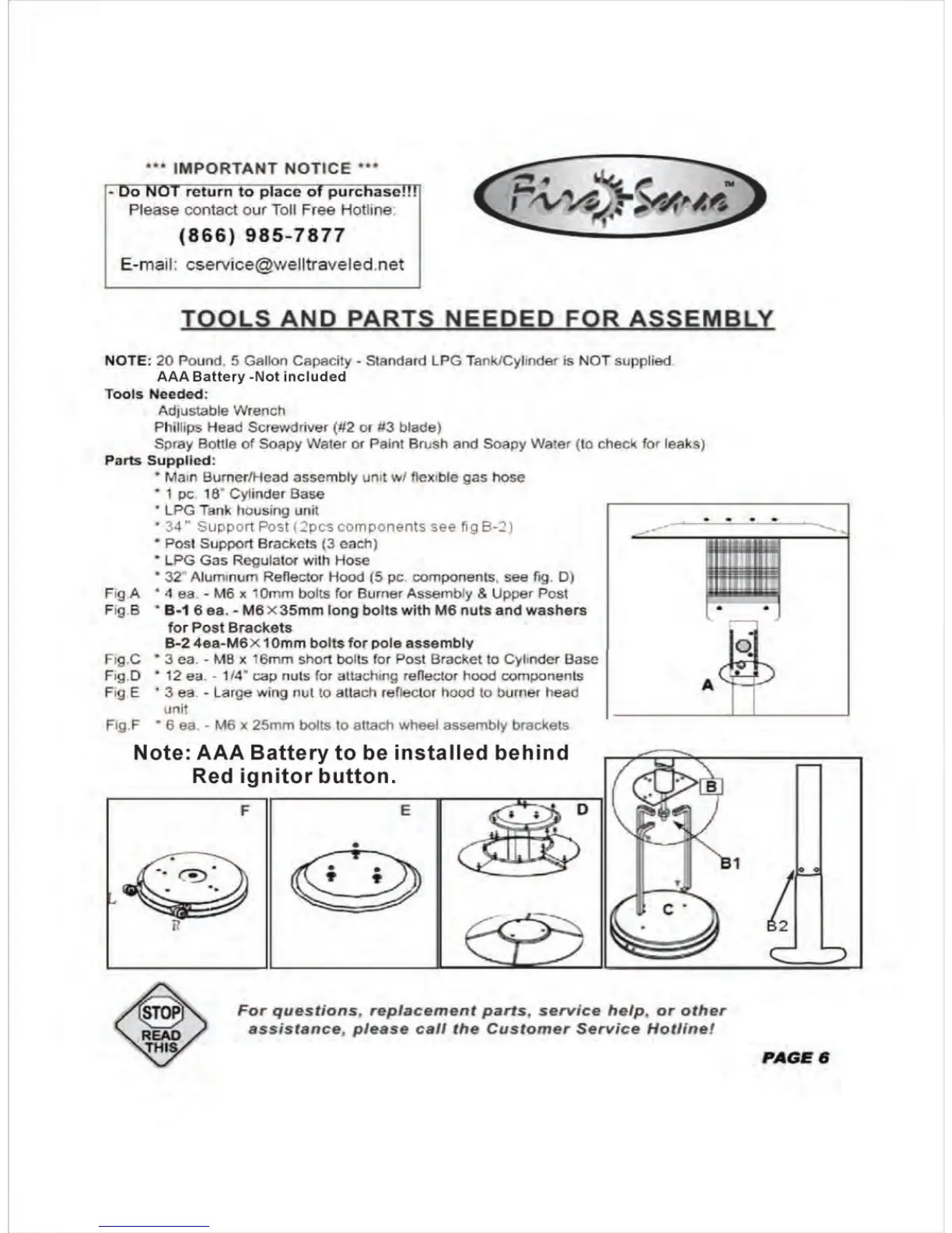 Fire Sense LTCSPH-SS - Tools and Parts Needed for Assembly