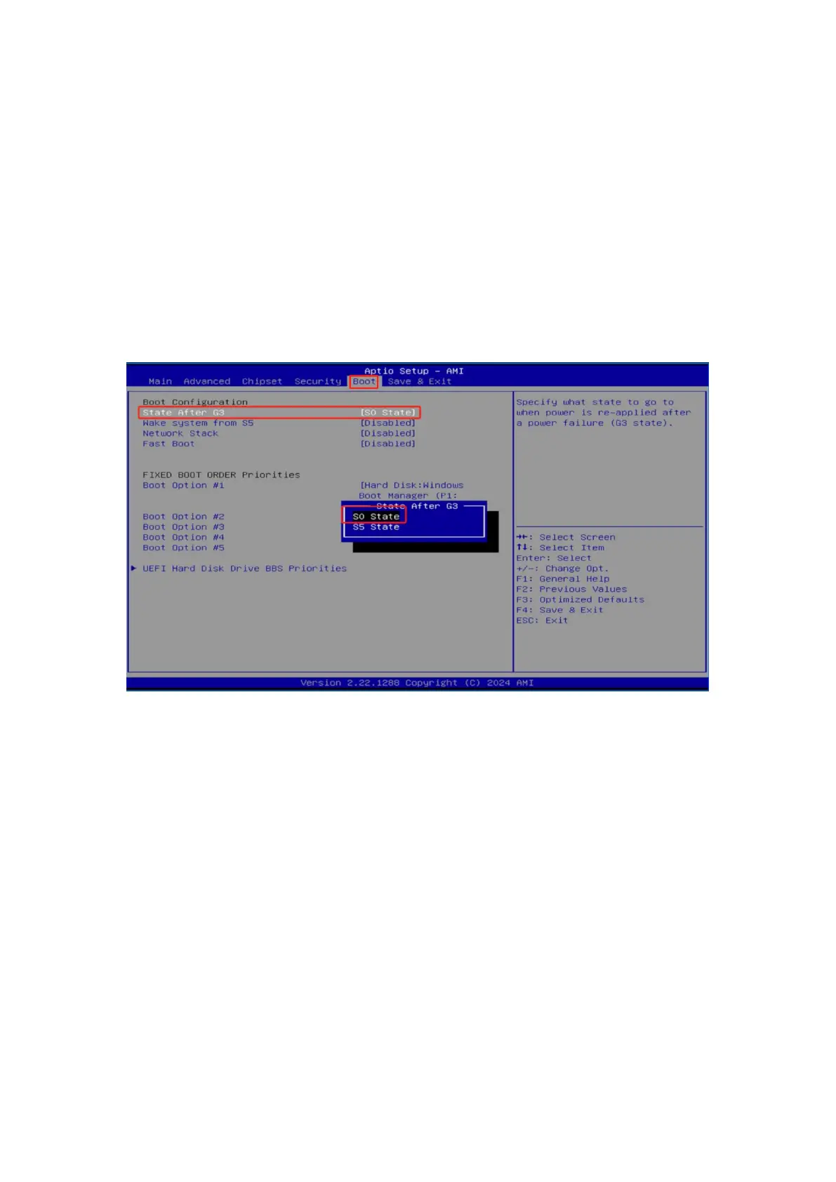b. Select Wake system from S5 [Disabled] and press Enter.