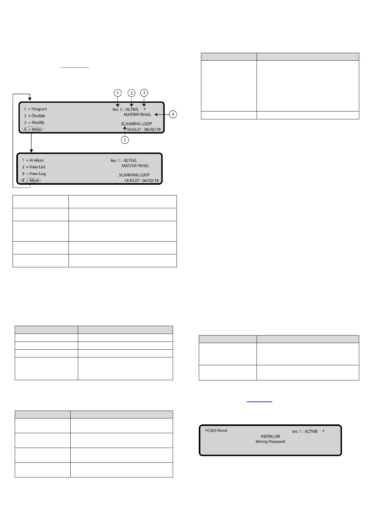 Note: When the panel starts its normal activity and there is