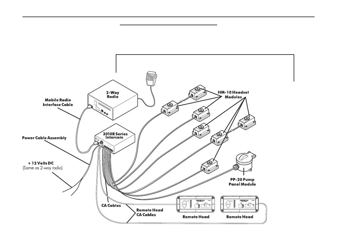 Six-conductor flat cable which connects the 3010R Series Intercom Unit to the HM-10, PP-20 headset modules and the