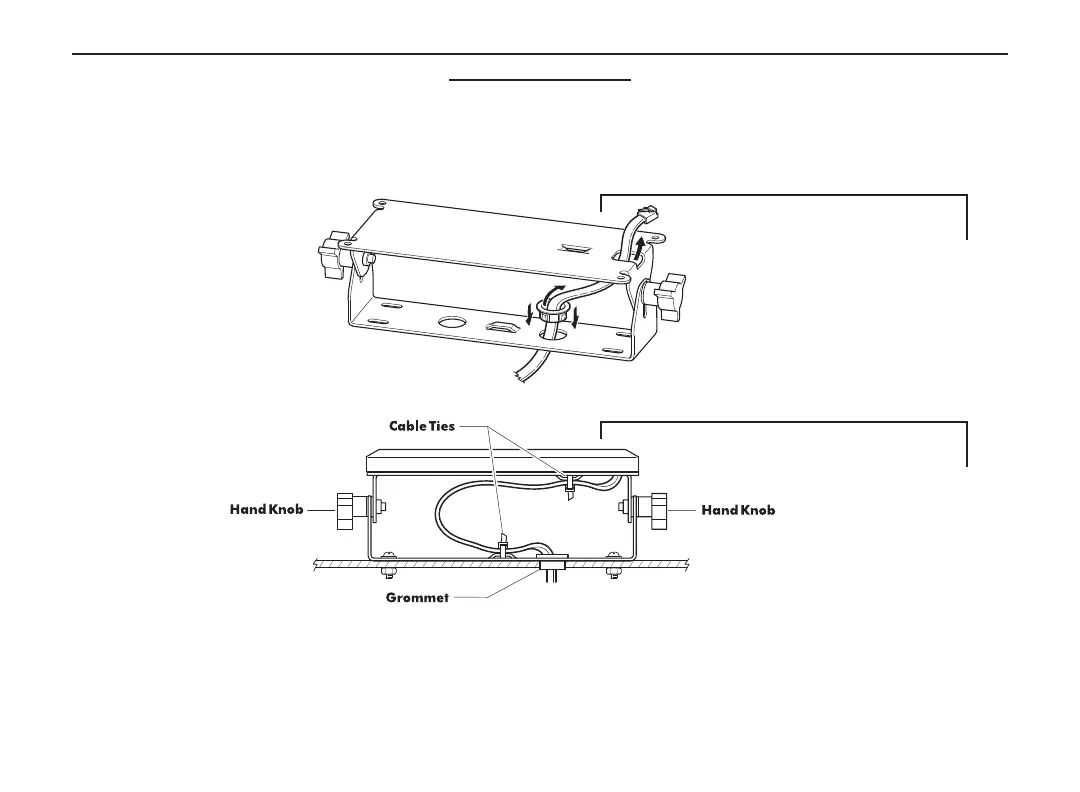 10. Before installing the bracket to the mounting surface, drill a 3 /4" hole at the wire location. Snap the grommet into the