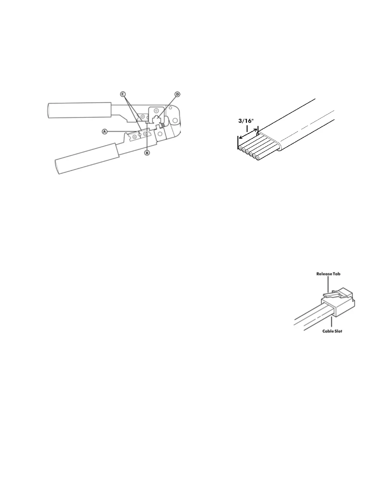This section describes the installation of the RJ-12 Modular Plugs onto the flat CA Cable.