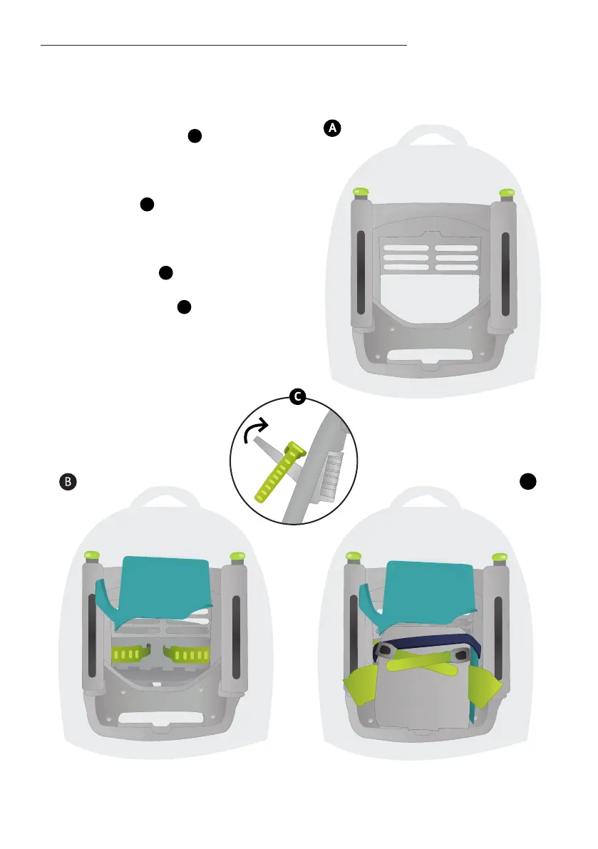 into the backpack by holding onto the