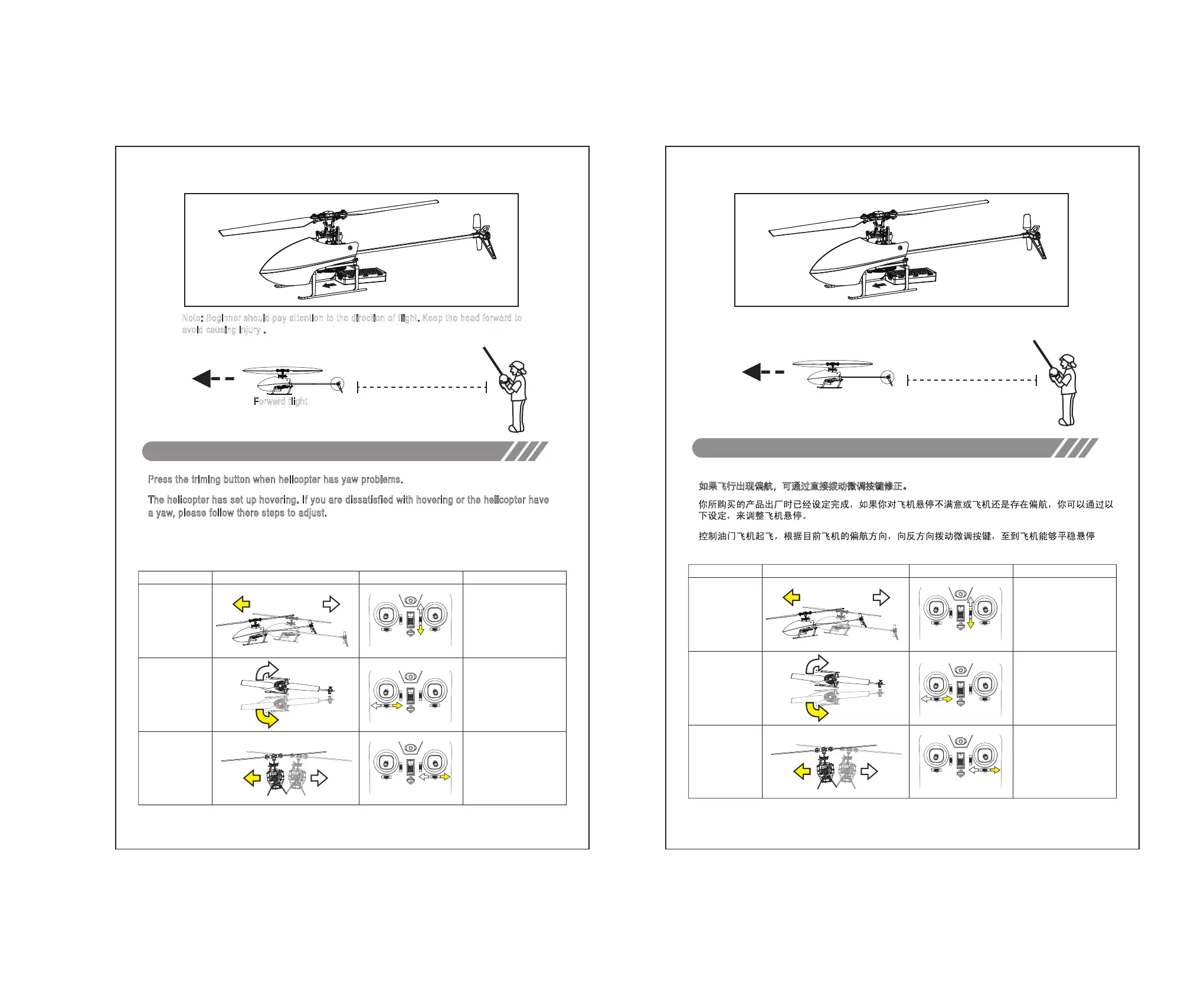 如果飞行出现偏航,可通过直接拨动微调按键修正。