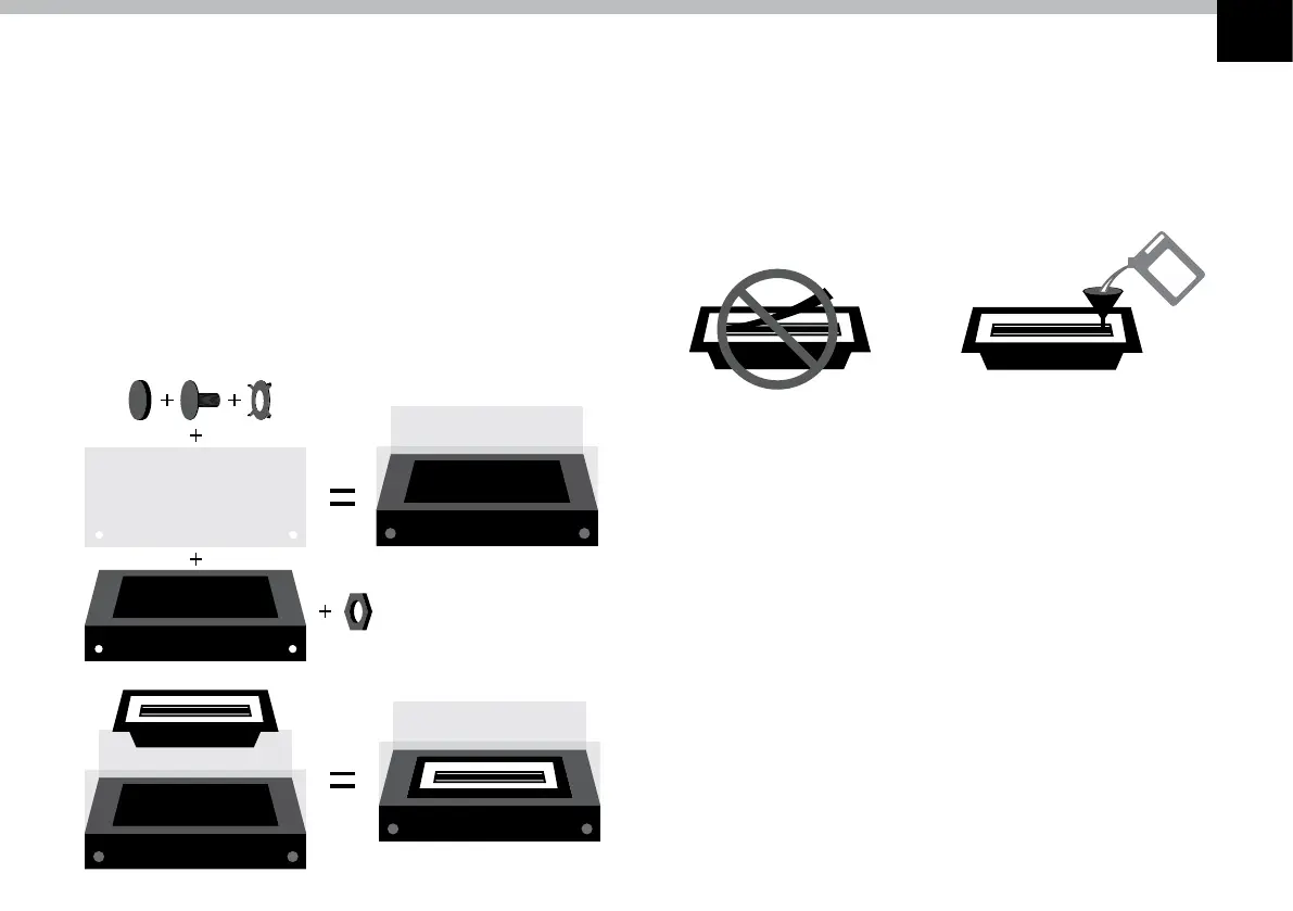 1. Mount the glass onto the metal frame with the screws.
