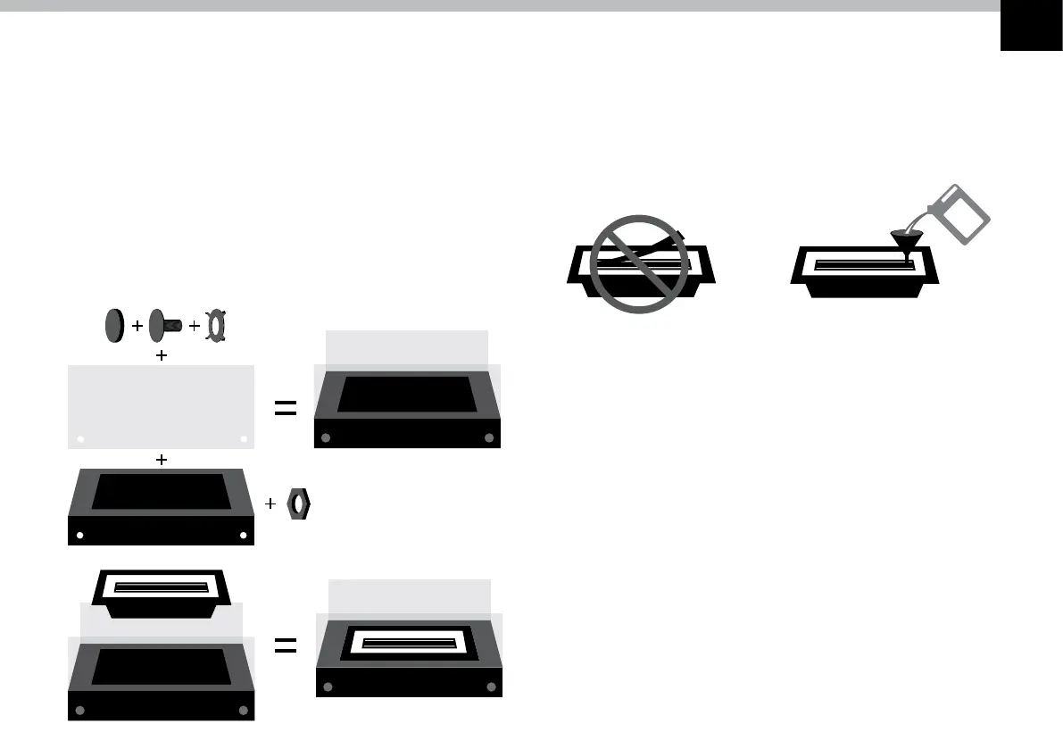 Pozor: Aby sa zabránilo neúmyselnému vyliatiu Bio-etanolu na časti