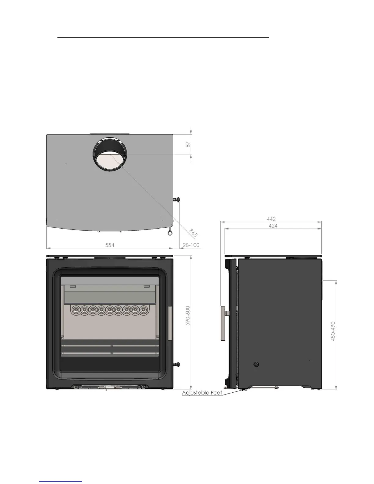Purevision 5kW WIDE Stove Principal Dimensions
