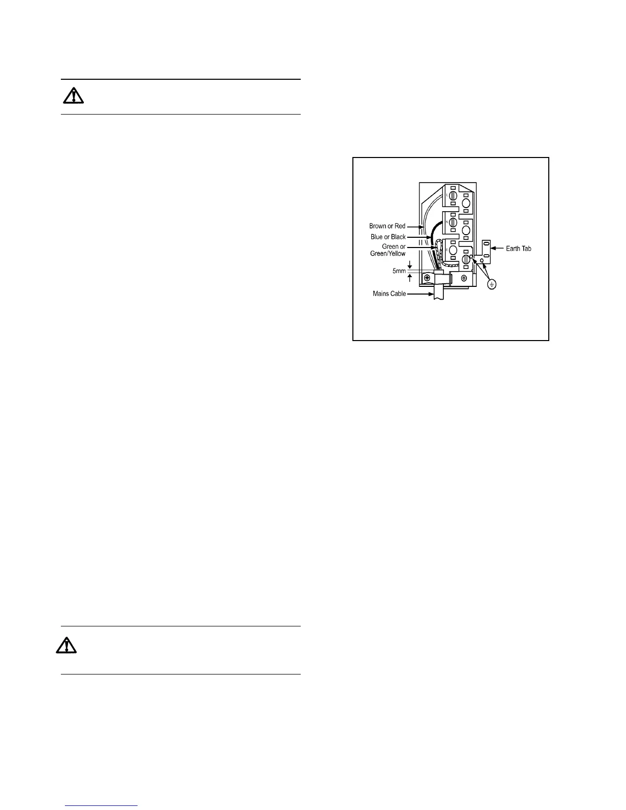 · Clamp the mains cable securely ensuring 5mm of