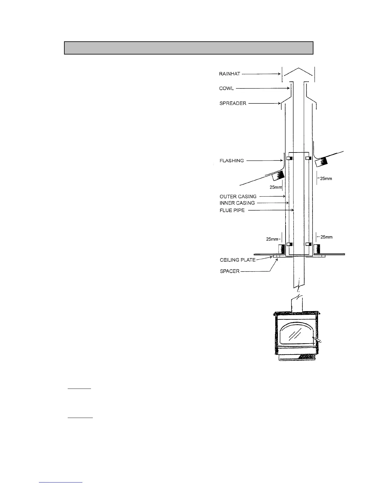 11. The flue pipe must extend 200mm above the outer casing.