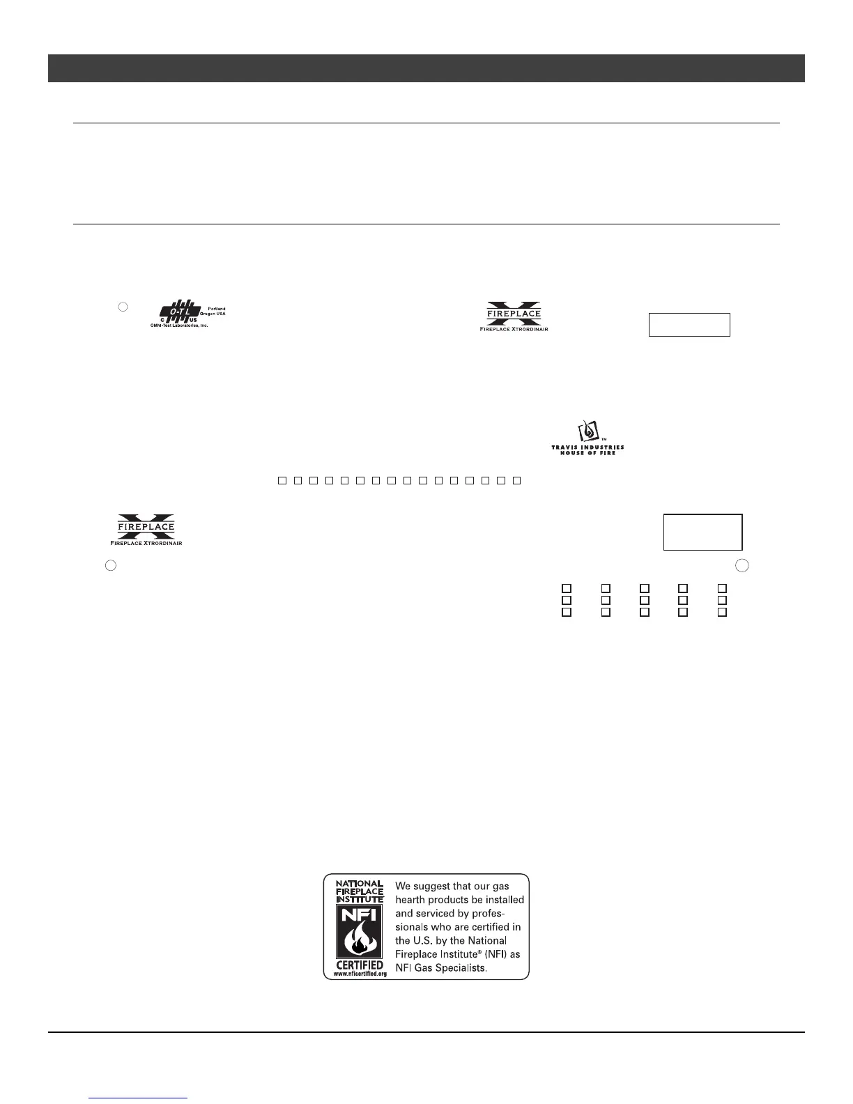 been evaluated as part of the certification. Do not use a fireplace insert or other products not specified for use with this product. This fireplace has not been tested with an unvented gas log set. To reduce